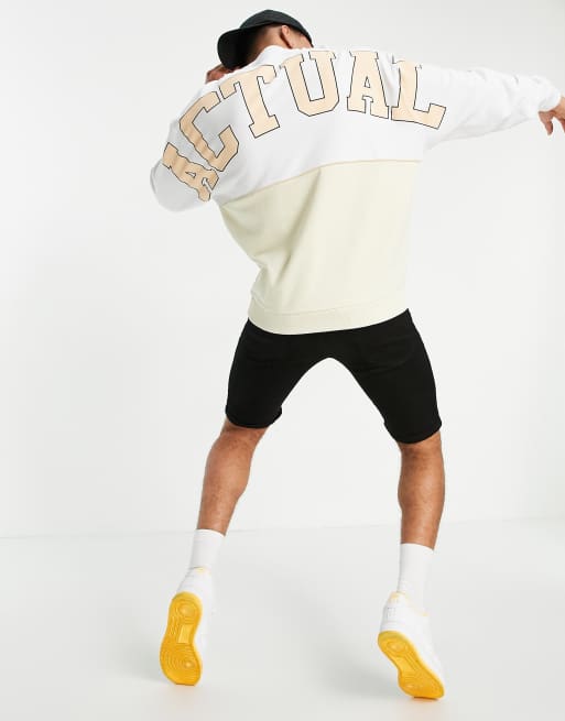ASOS Actual - Oversized hvid sweatshirt med neutralt farveblok-design og bouclé-logo