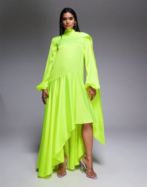 ASOS ARCHIVE - Limegrøn maxikjole i satin med lavtsiddende talje og tørklædedetalje
