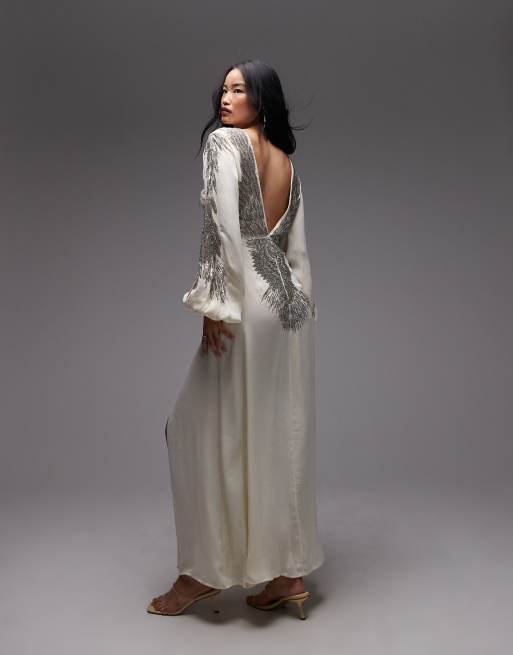 ASOS ARCHIVE - Lysegul midikjole med blouson-ærmer og udsmykket vingeprint på ryggen