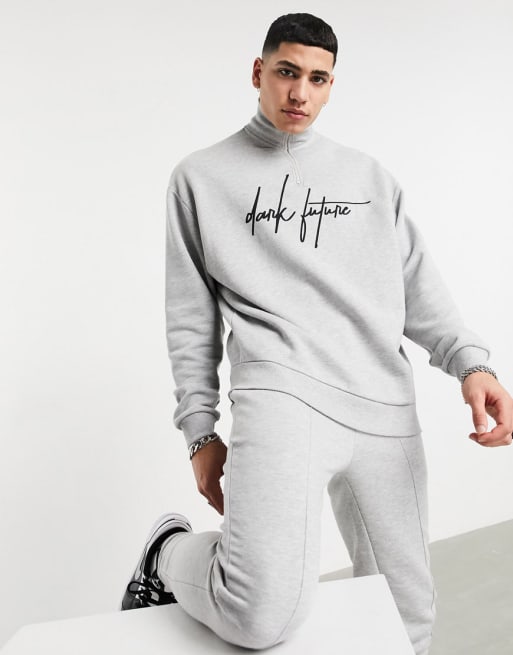 ASOS - Dark Future - Gråmeleret sæt med logoprint