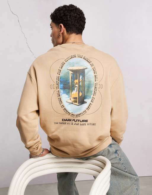 ASOS Dark Future - Naturfarvet oversized sweatshirt med grafisk print på ryggen og logo foran
