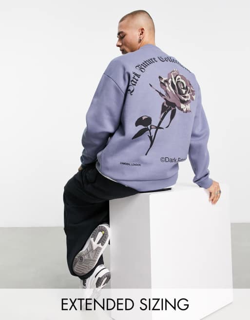 ASOS Dark Future - Oversized skiferblå sweatshirt med grafisk blomsterprint