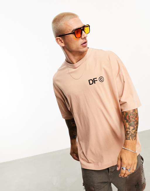 ASOS Dark Future - Oversized T-shirt med logoprint bagpå i lysebrun