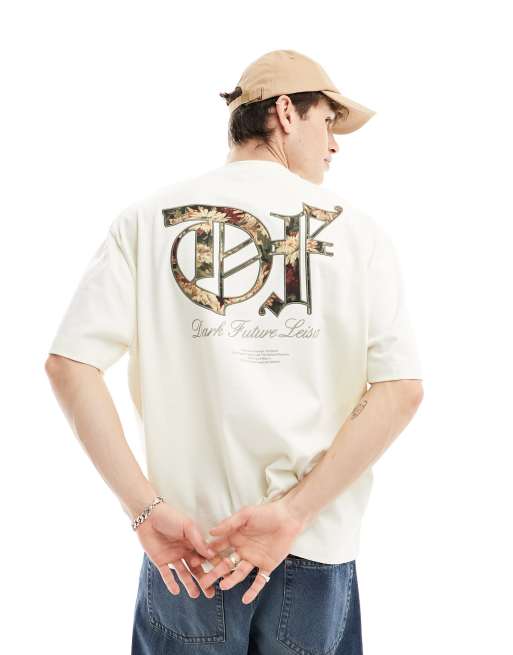 ASOS Dark Future - Råhvid oversized T-shirt med blomstret tekstprint på ryggen
