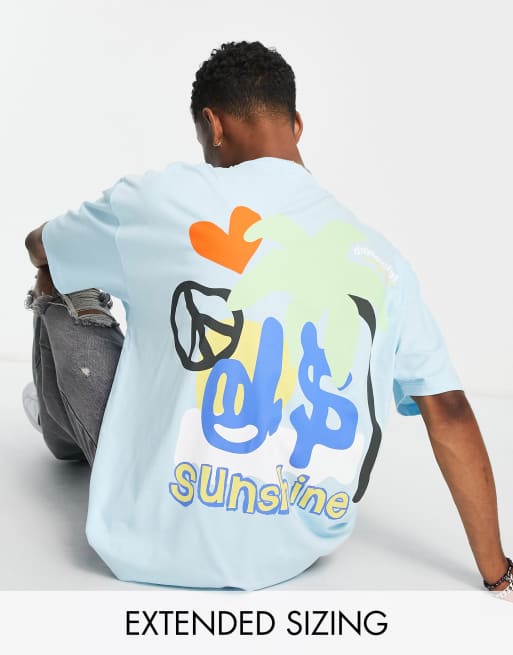 ASOS Daysocial - Lyseblå oversized T-shirt med grafisk palmeprint bagpå
