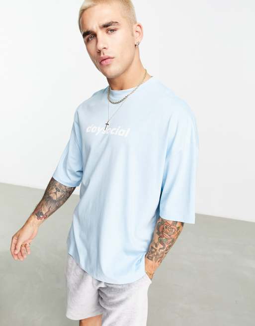 ASOS - Daysocial - Oversized blå T-shirt med logoprint foran
