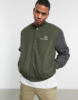 ASOS Daysocial - Oversized college-jakke i kaki med grå kontrastærmer