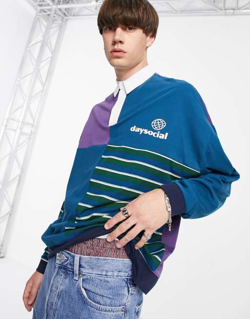 ASOS Daysocial - Oversized rugby-skjorte med lange ærmer, farveblokke og stribede paneler i blå