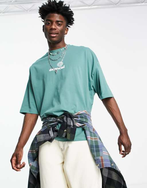 ASOS Daysocial - Oversized t-shirt med print på brystet i blå
