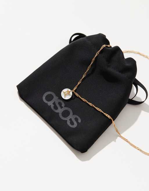 ASOS DESIGN - 14k forgyldt halskæde med tvillingens stjernetegn og disk i imiteret perle i gavepose