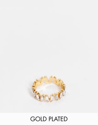 ASOS DESIGN - 14k guldbelagt ring med baguetteformede krystaller