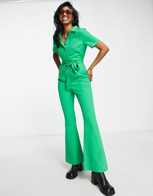 ASOS DESIGN - 70'er kedeldragt med svaj i grøn twill