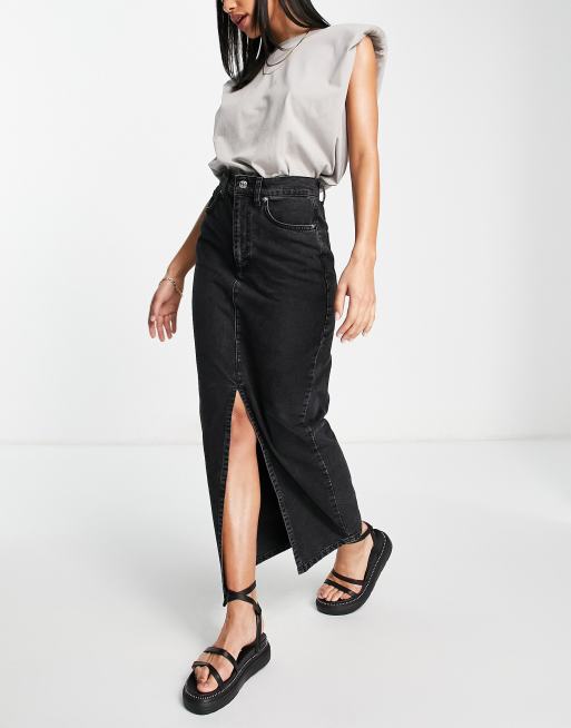 ASOS DESIGN - "90'er" maxinederdel i denim i sort vask