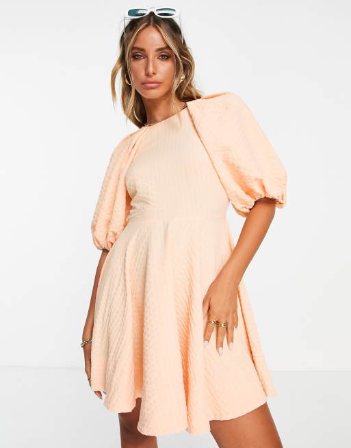 ASOS DESIGN - Abrikosfarvet minikjole med tekstur samt åben ryg og pufærmer
