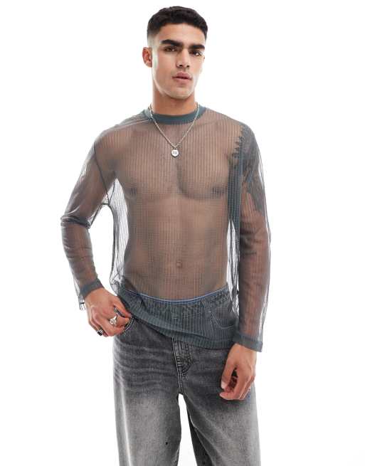 ASOS DESIGN - Afslappet koksgrå T-shirt i mesh med lange ærmer