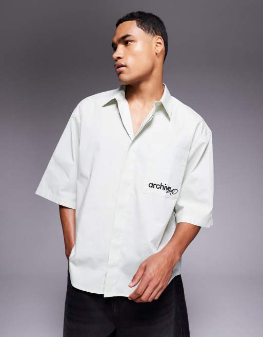 ASOS DESIGN - Afslappet lysegrøn skjorte med brystbrodering