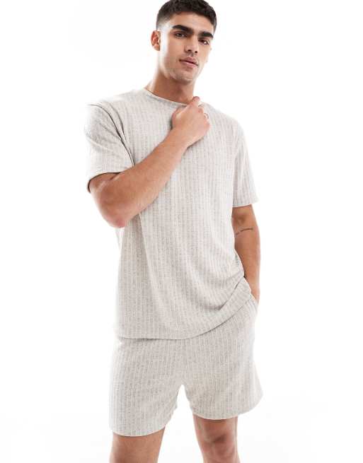 ASOS DESIGN - Afslappet og lysebrunt pyjamassæt med tekstur