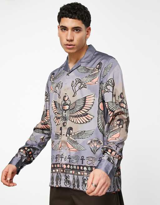 ASOS DESIGN - Afslappet satinskjorte med revers og symbolprint forskellige steder
