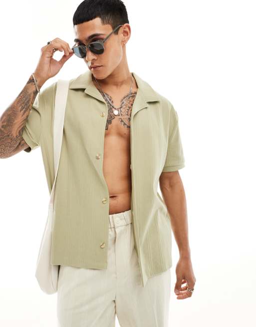 ASOS DESIGN - Afslappet skjorte med knapper i kakigrøn