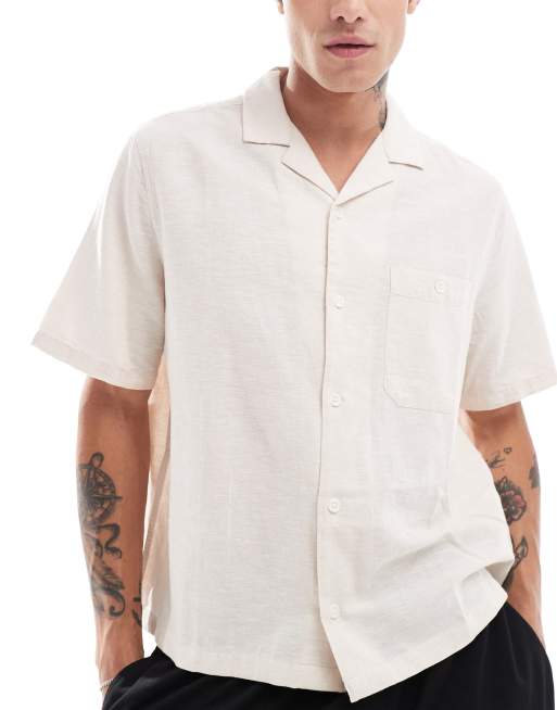 ASOS DESIGN - Afslappet skjorte med reverskrave i ecrufarvet hør i firkantet pasform