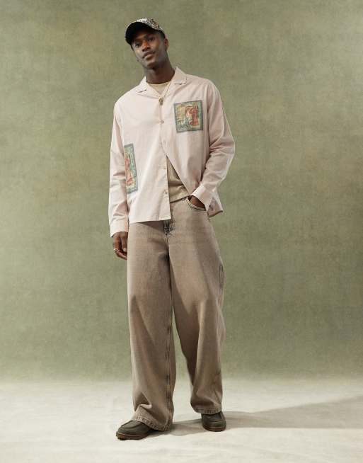 ASOS DESIGN - Afslappet skjorte med reverskrave og applikation med print i lyserød