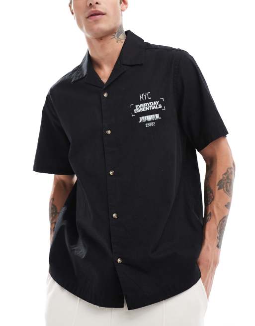 ASOS DESIGN - Afslappet skjorte med reverskrave og print på brystet i sort