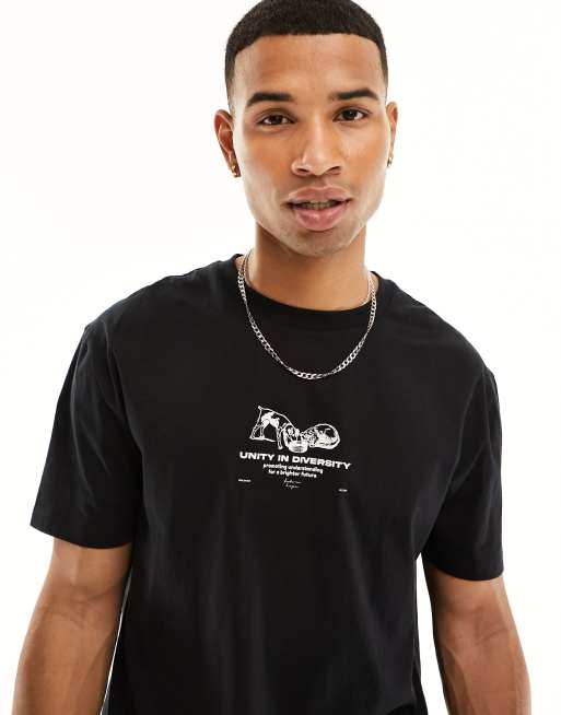 ASOS DESIGN - Afslappet sort T-shirt med tegnet print foran