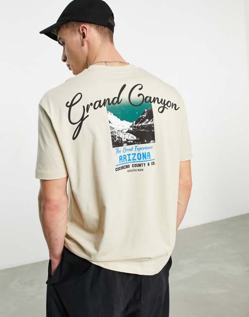 ASOS DESIGN - Afslappet t-shirt i beige med print af bybilleder på ryggen