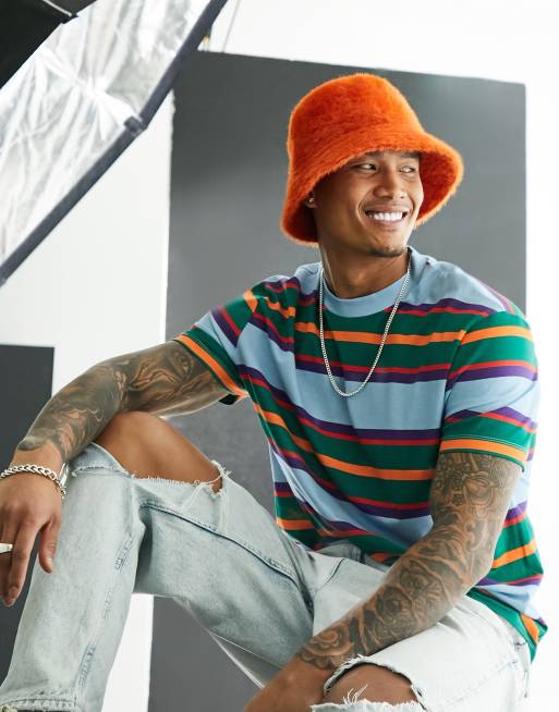 ASOS DESIGN - Afslappet T-shirt. med blå og grønne striber