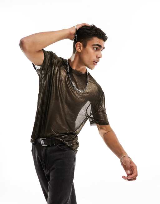 ASOS DESIGN - Afslappet T-shirt med glimmer i mesh