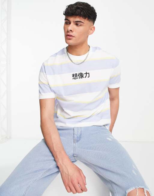 ASOS DESIGN - Afslappet T-shirt med print på brystet og blå striber