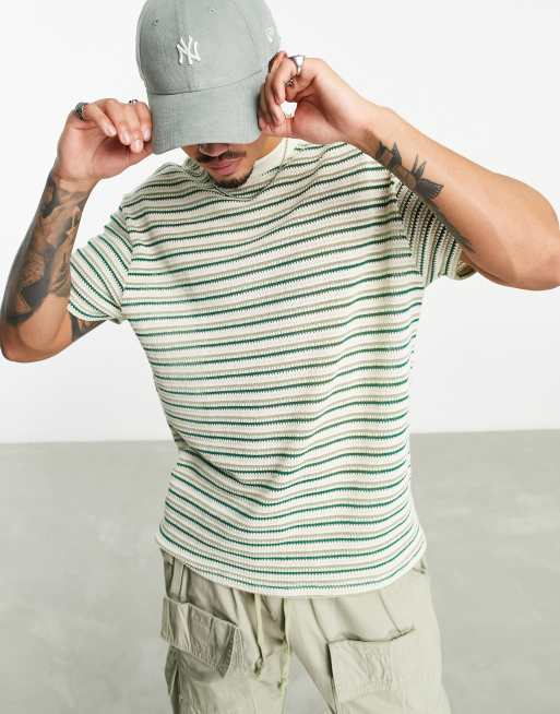 ASOS DESIGN - Afslappet tekstureret t-shirt med grønne og beige striber