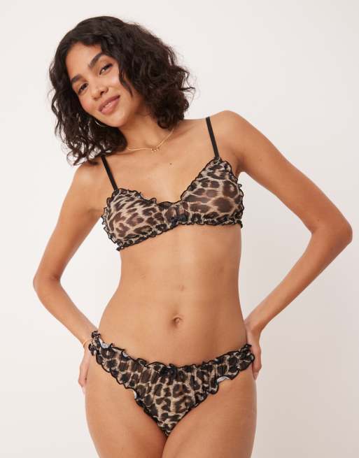 ASOS DESIGN - Alba - Lingerisæt med leopardprint i mesh