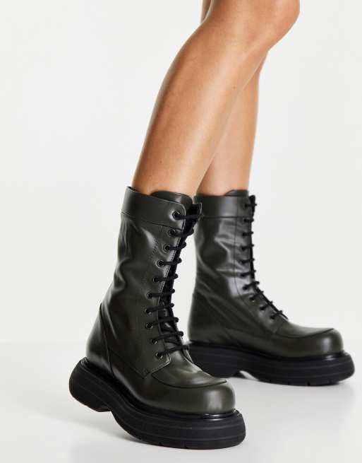ASOS DESIGN - Alicia - Chunky støvler med snørebånd i kakigrønt premium-læder