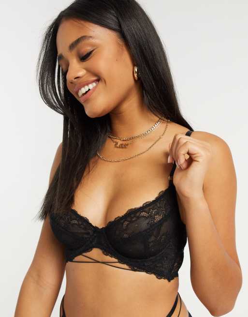 ASOS DESIGN - Alzena longline bh med blonder og underbøjle med stroppedetalje bagpå
