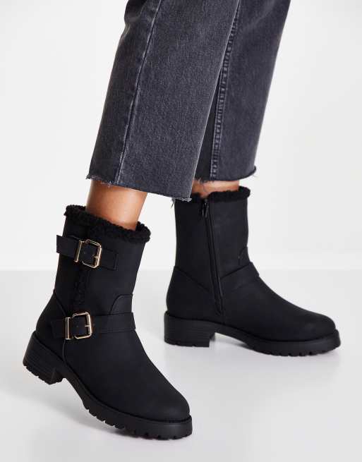 ASOS DESIGN - Amber - Sorte pull on-vandrestøvler med for af imiteret lammeskind