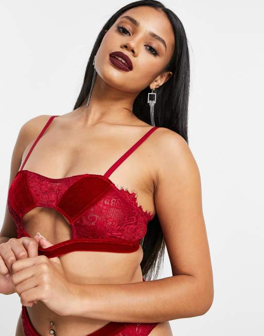 ASOS DESIGN - Amelia - Rød bralet i fløjl og blonder med udskæring