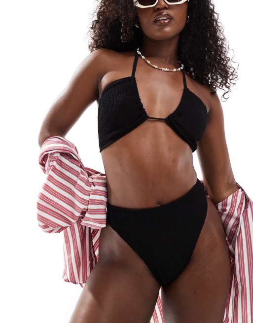 ASOS DESIGN - Amy - Sort bandeau-bikinitop med halterneck i krølstof