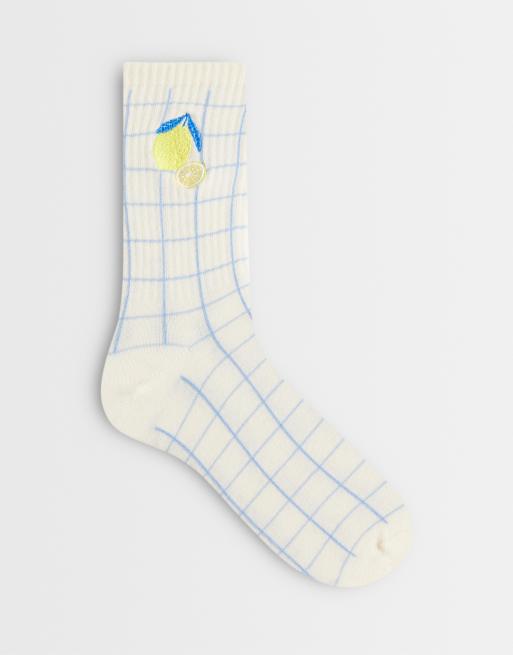 ASOS DESIGN - Ankelsokker med citronbroderi og blå tern