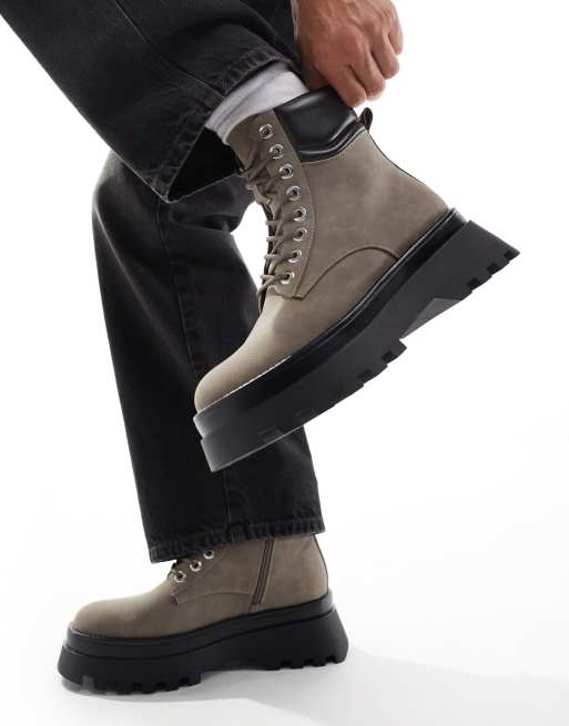 ASOS DESIGN - Arbejdssrøvler i grå med chunky sål og snøre
