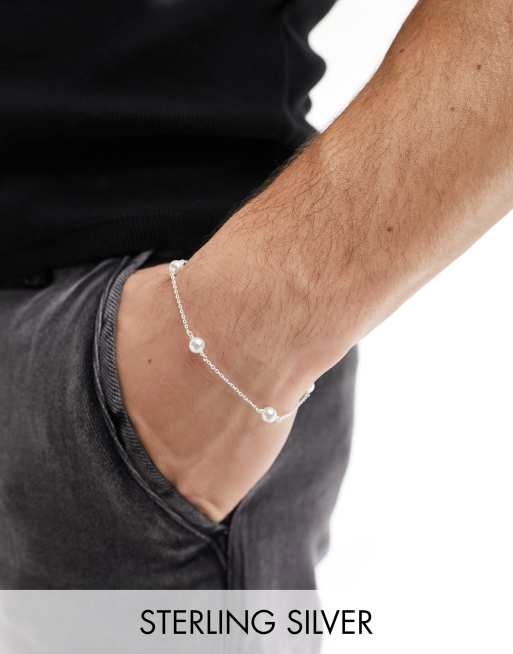 ASOS DESIGN - Armbånd i sterlingsølv i sølvfarve med imiterede perler