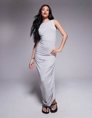 ASOS DESIGN - Asymmetrisk og gråmeleret midikjole med bred halsudskæring og rynkede sider