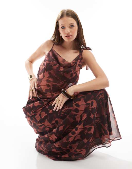 ASOS DESIGN - Asymmetrisk overdel i chiffon med vandfaldsudskæring og sløret blomstermønster