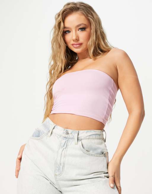 ASOS DESIGN - Bandeau-croptop i pastelrosa bomuld - PINK