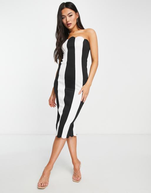 ASOS DESIGN - Bandeau-midikjole med bølgekant foroven og monokrome striber