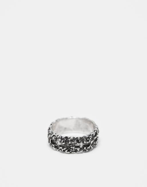ASOS DESIGN - Båndring med tekstur og kors-prægning i poleret sølvfarve