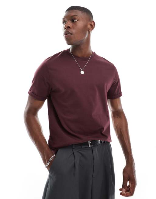 ASOS DESIGN - Essentials - Bordeaux T-shirt med rullede ærmekanter i regular fit