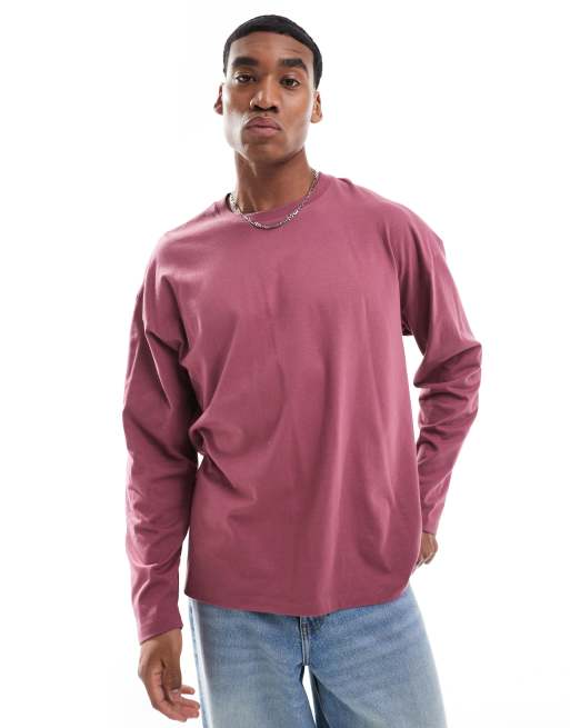 ASOS DESIGN - Basisdele - Mørk pink oversized T-shirt med lange ærmer i firkantet pasform