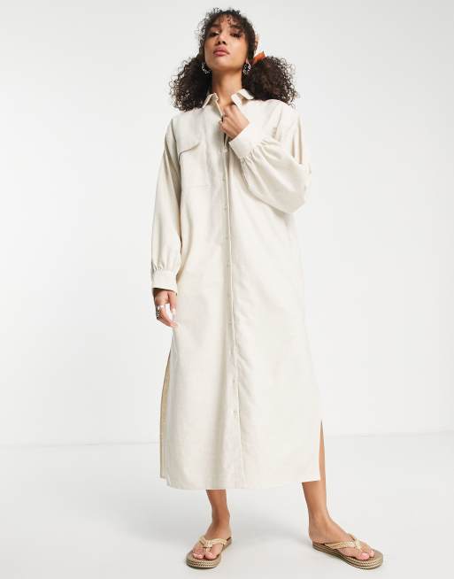ASOS DESIGN - Beige afslappet maxi-skjortekjole i hør