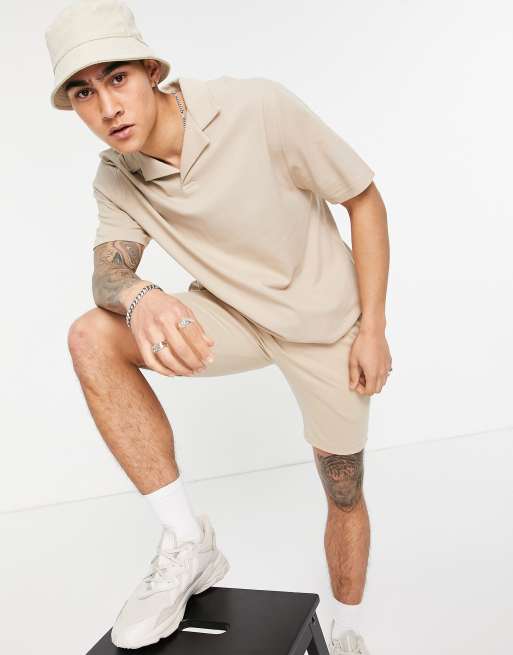 ASOS DESIGN - Beige afslappet polo i piqué med reverskrave - del af sæt